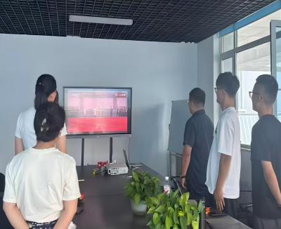 This morning, the company organized its employees to watch the live broadcast of the military parade commemorating the 80th anniversary of the victory of the Chinese People's War of Resistance against Japanese Aggression and the World Anti-Fascist War in multiple venues collectively. Employees watched the entire conference attentively, stood up to sing the national anthem together, listened to important speeches, and witnessed the spectacular scene of the inspected troops passing through Tiananmen Square. The new types of weaponry and equipment as well as the modern military style are inspiring and demonstrate the country's powerful national defense capabilities.